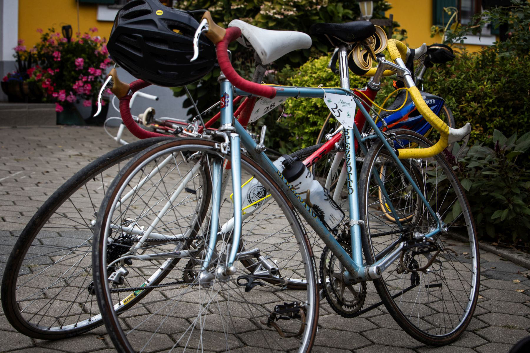 - Teilnahmeberechtigte Räder: Stahlrahmen sowie Aluminium- und Carbonrahmen der ersten Stunde (wie Alan, Vitus, Litespeed,…), Schalthebel am Rahmen, Bremsseile freilaufend am Lenker, Pedale ohne oder mit Clips/Riemen, sogenannte „Körbchen“ (keine modernen Klickpedale), Laufräder ohne Hochprofile (vorrangig mit 28, 32 und 36 Speichen), Selbstbau-Fahrräder im Vintage/Retrolook die obige Kriterien erfüllen: TeilnehmerInnen mit nicht passenden Rädern verweigern wir den Start, die Startnummer wird diesen nicht ausgehändigt.