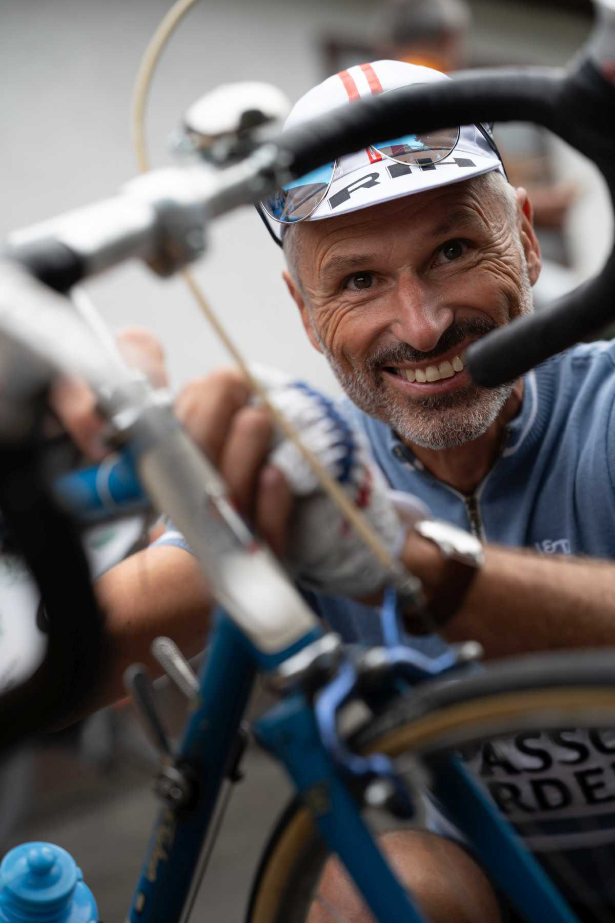 Es gibt keine Zeitnehmung, gefahren wird auf klassischen Rennrädern bis Baujahr 1990, also alles was noch in Schilling, DM, Lire oder Französischen Francs bezahlt worden ist.